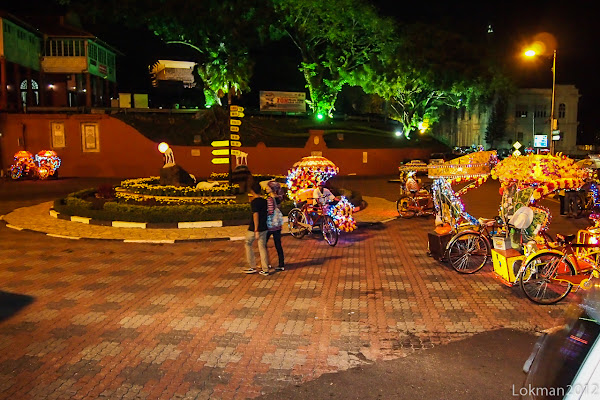 2 biji beca untuk kami 4 orang dari depan muzium stem ke stadhuys..Balik dari stadhuys ke hotel...malam area stadhuys agak happening tapi tak ada jual cendol macam sebelah siang
